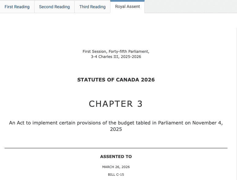 On March 26, 2026, Bill C-15 Passed and Received Royal Assent. Within it’s clauses is included an extension to the Clean Energy Investment Tax credits to include biomass systems generating heat and/or electricity.