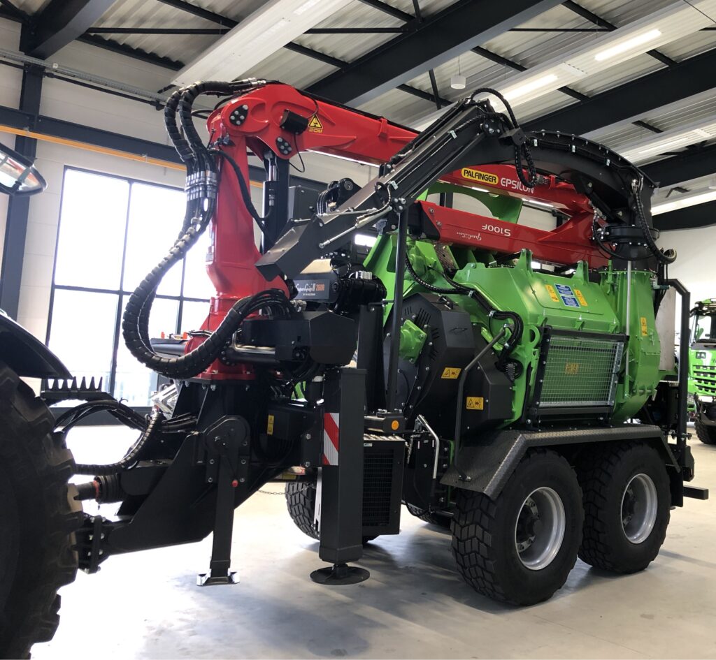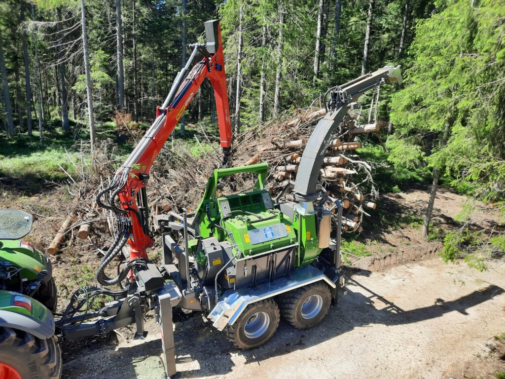 Our biggest chipper, the HM 14-860 K has an In-Feed of 31.5” x 48” and a max Trunk Diameter of 25.5″, allowing it to process large volume of large and small diameter logs, tops and branches with ease.