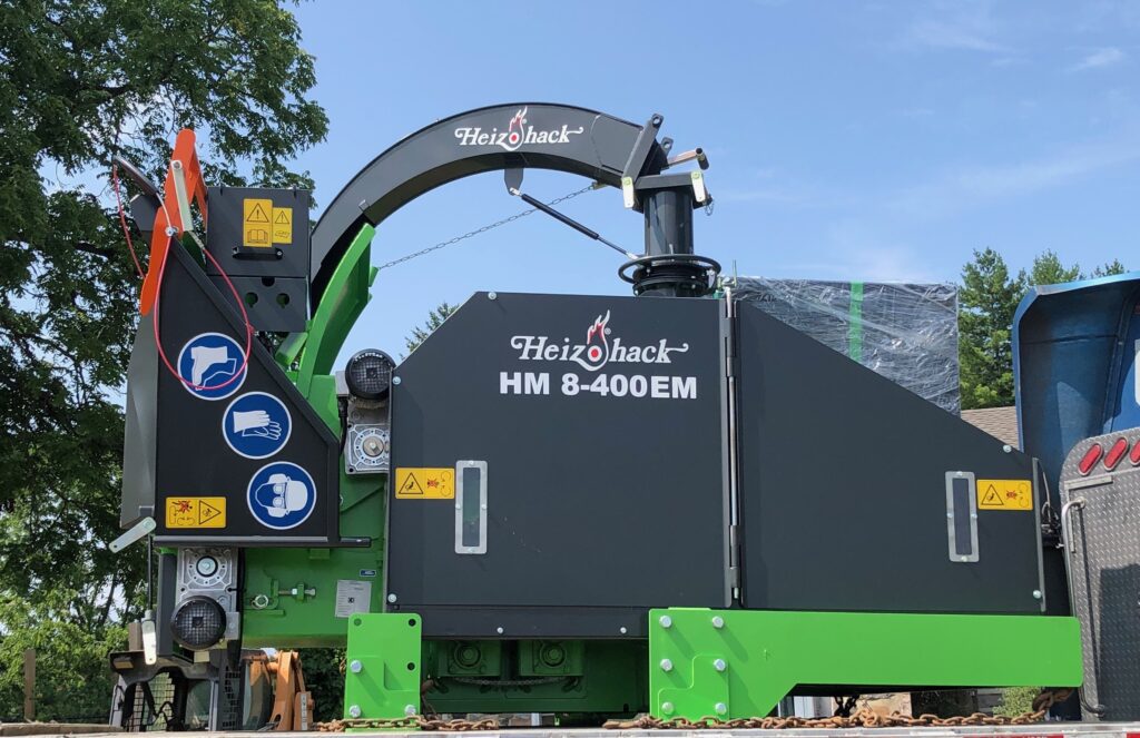In addition to the safety bar and cable, 2 emergency stop buttons are located on each side of the in-feed table, making the Heizohack chipper the safest chipper on the market.