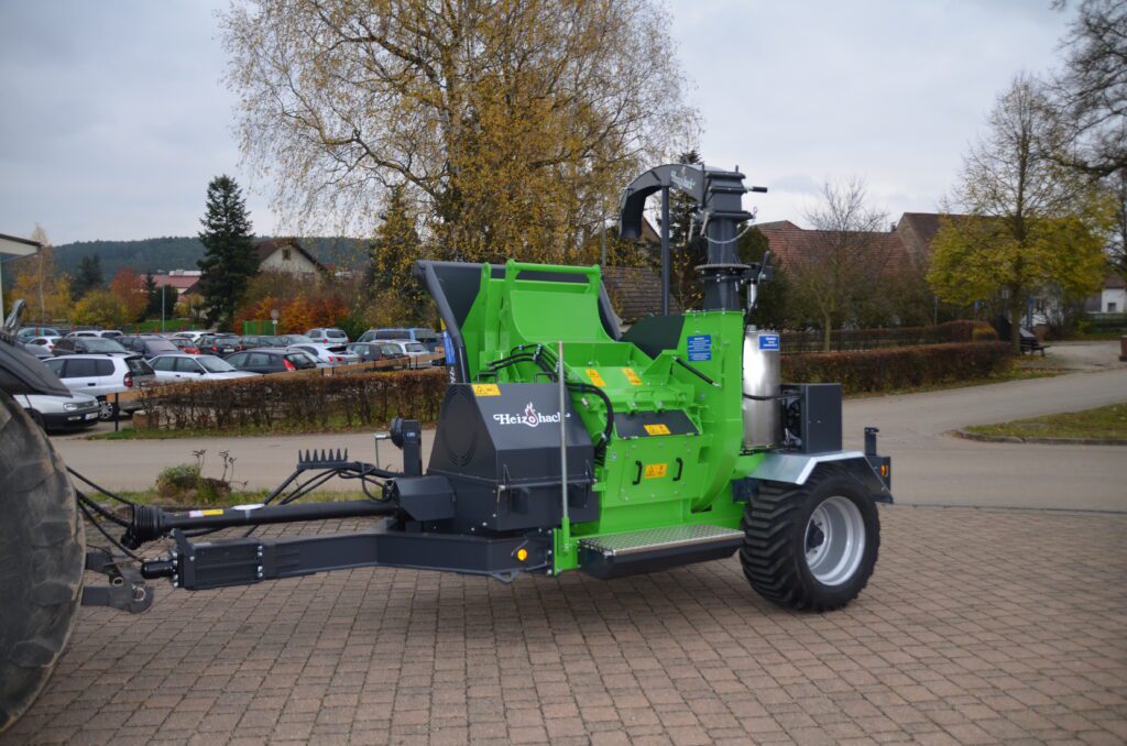 Like all Heizohack chippers, the feed system has a conveyor belt and a pressure roller to self feed anything you throw at it.