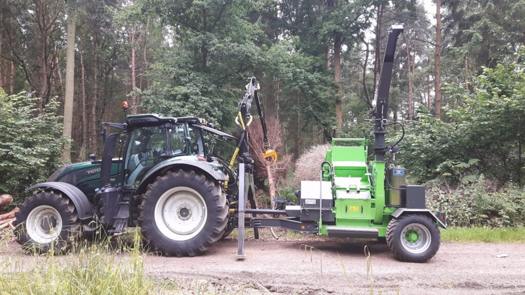A 120hp tractor can easily power this chipper.
