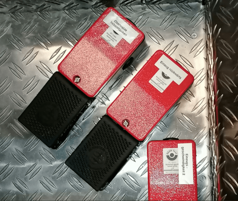 Emergency Stop Buttons are located on either side of the In-Feed for quick access.