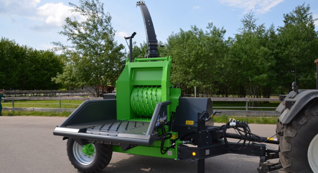 When pushing your tractor and chipper to its maximum capacity with large, hardwood material, the chipper’s auto reversing in-feed starts, stops and auto-reverses in reaction to the PTO speed.  If your tractor is getting bogged down by the heavy load, the in-feed will stop, back up and allow the PTO to get back up to speed before pulling the fuel in again.