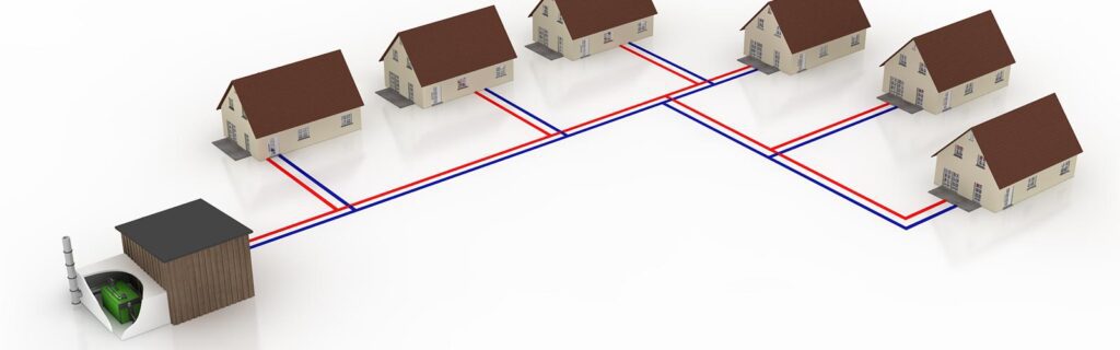 Capable of heating sub-divisions and housing clusters, a single biomass boiler room can provide a modern, low cost and carbon neutral heating solution for a large cluster of homes or buildings within a community.