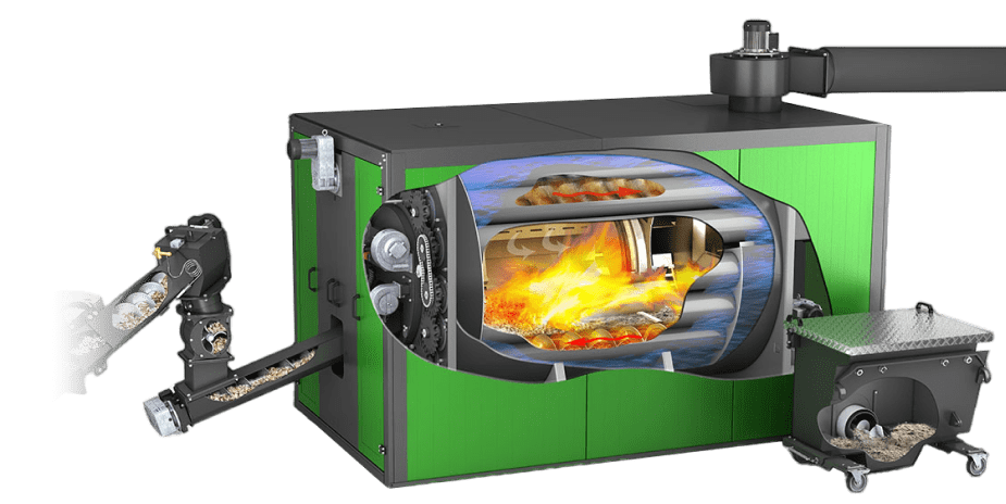 Chauffage entièrement automatisé aux copeaux de bois et à la biomasse